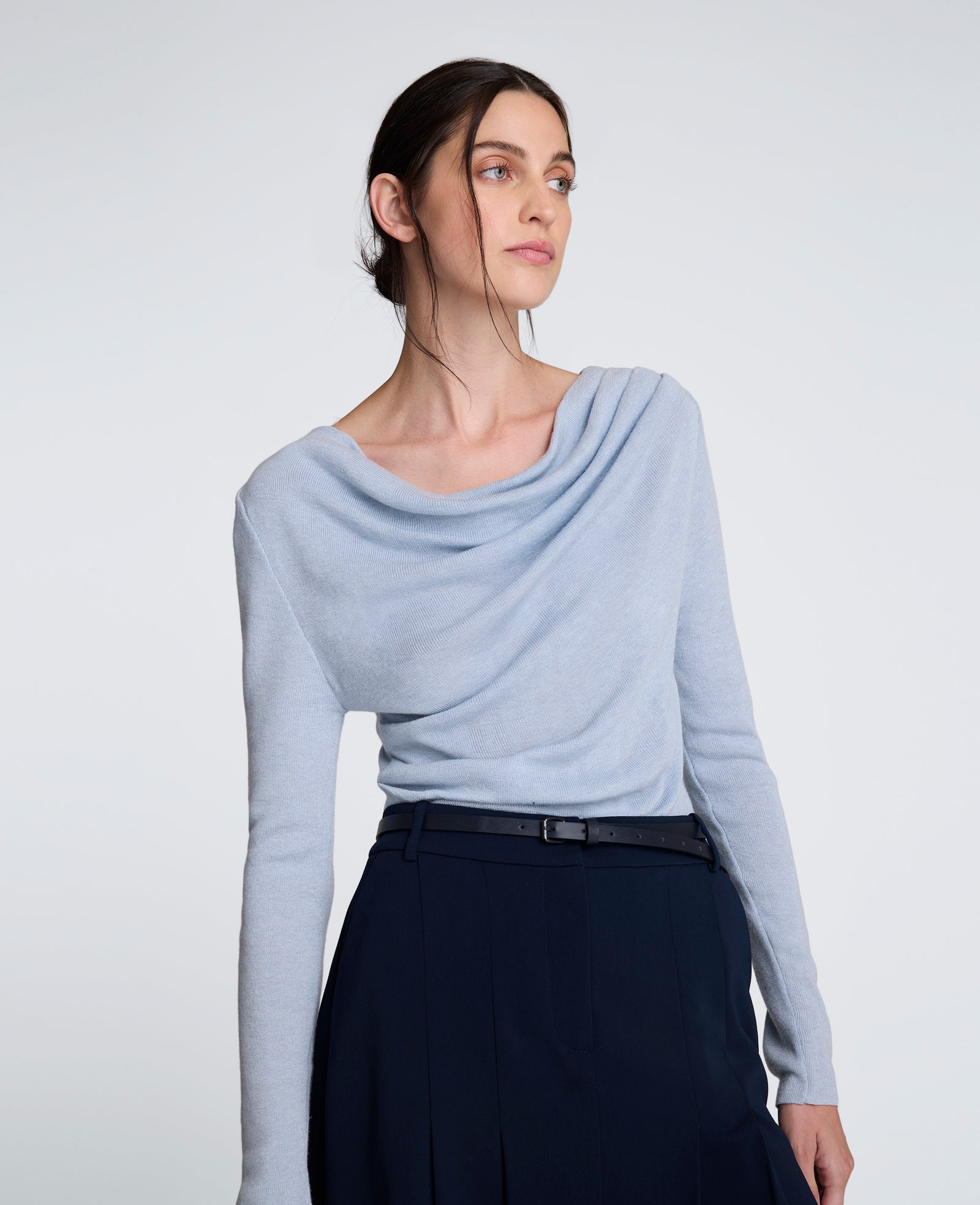 - Draped neckline