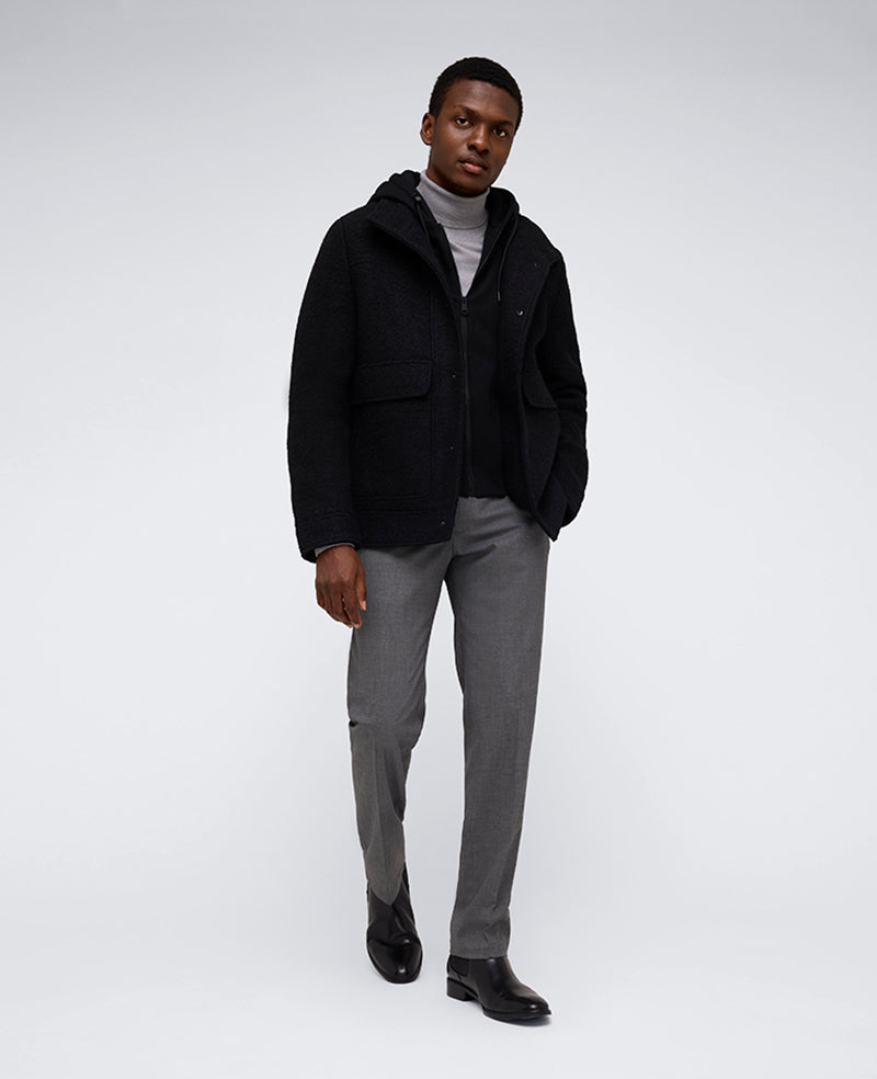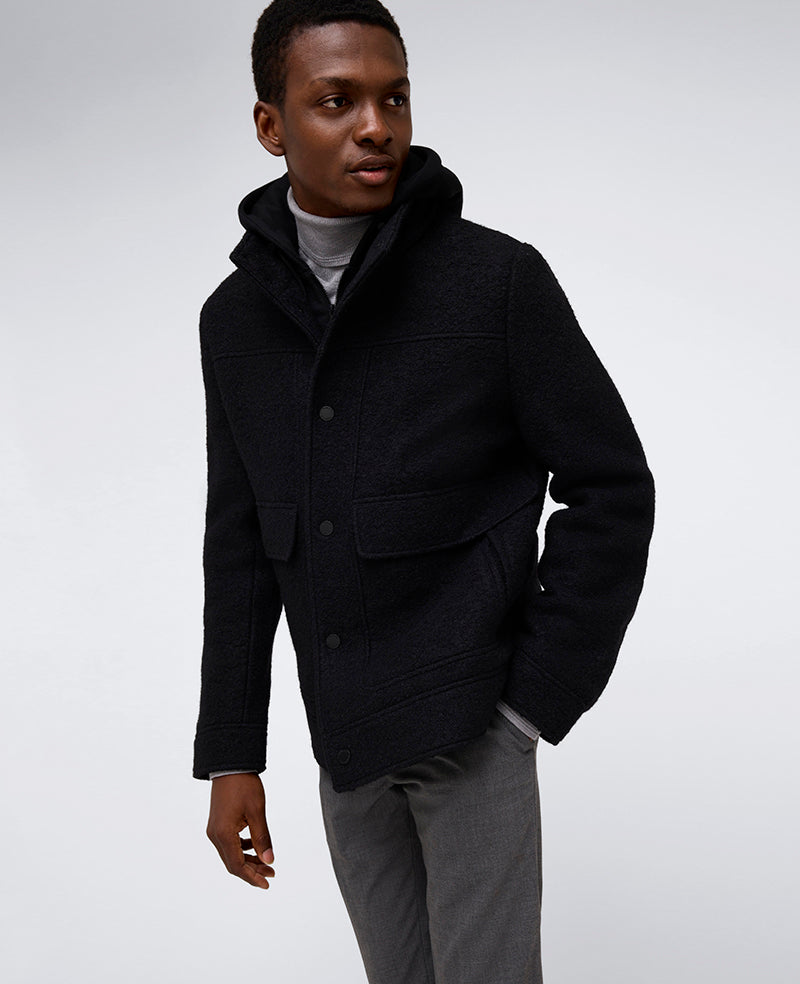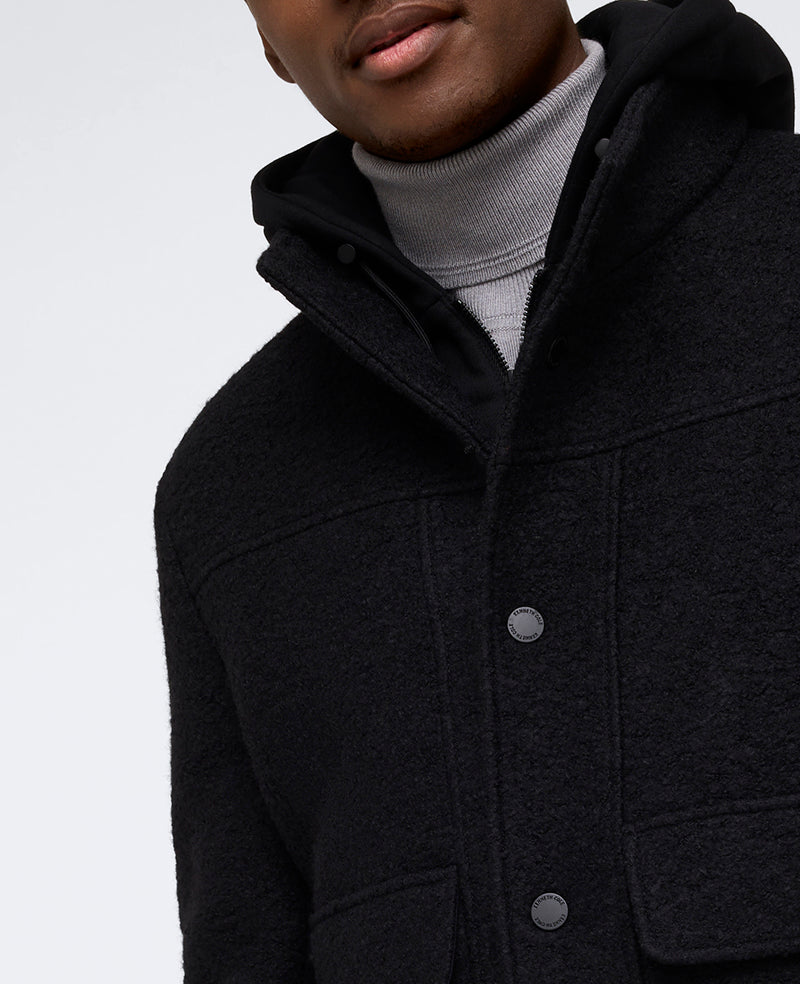 - Shell: 50% wool, 50% polyester; Lining: 100% polyester