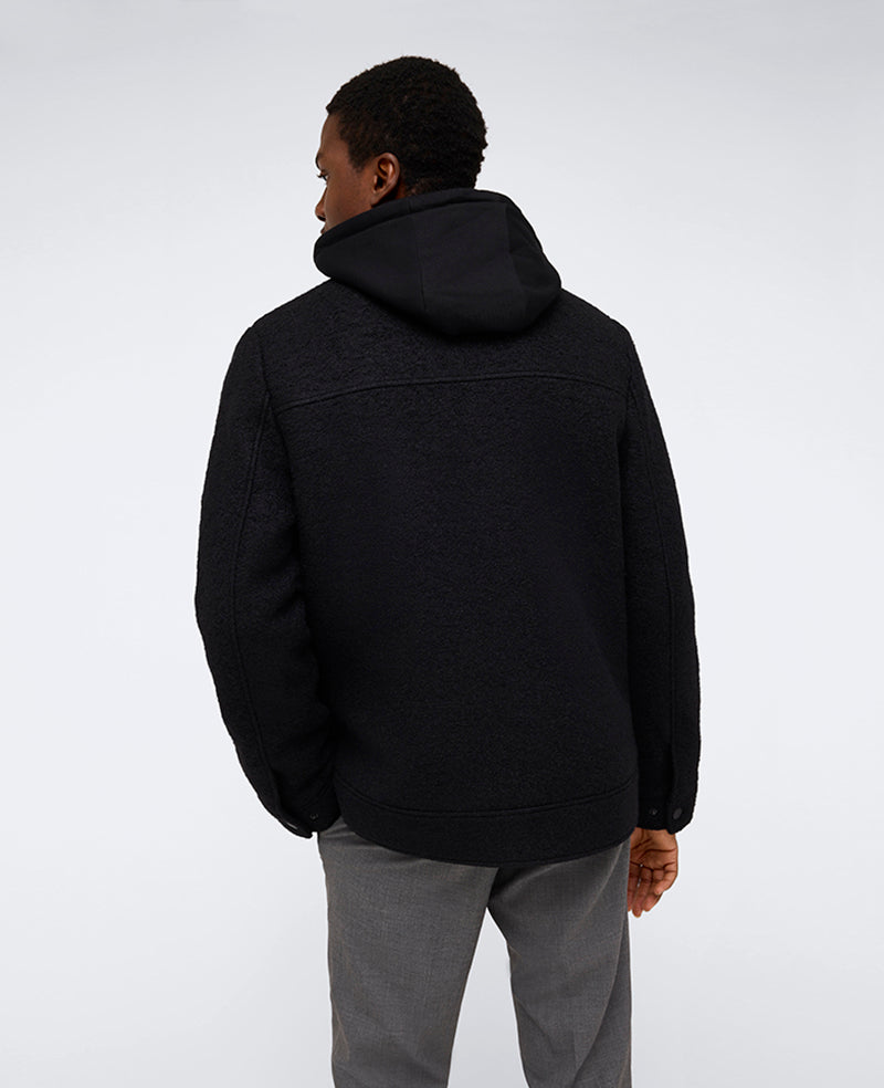 - Attached set-in jersey bib and drawcord hood