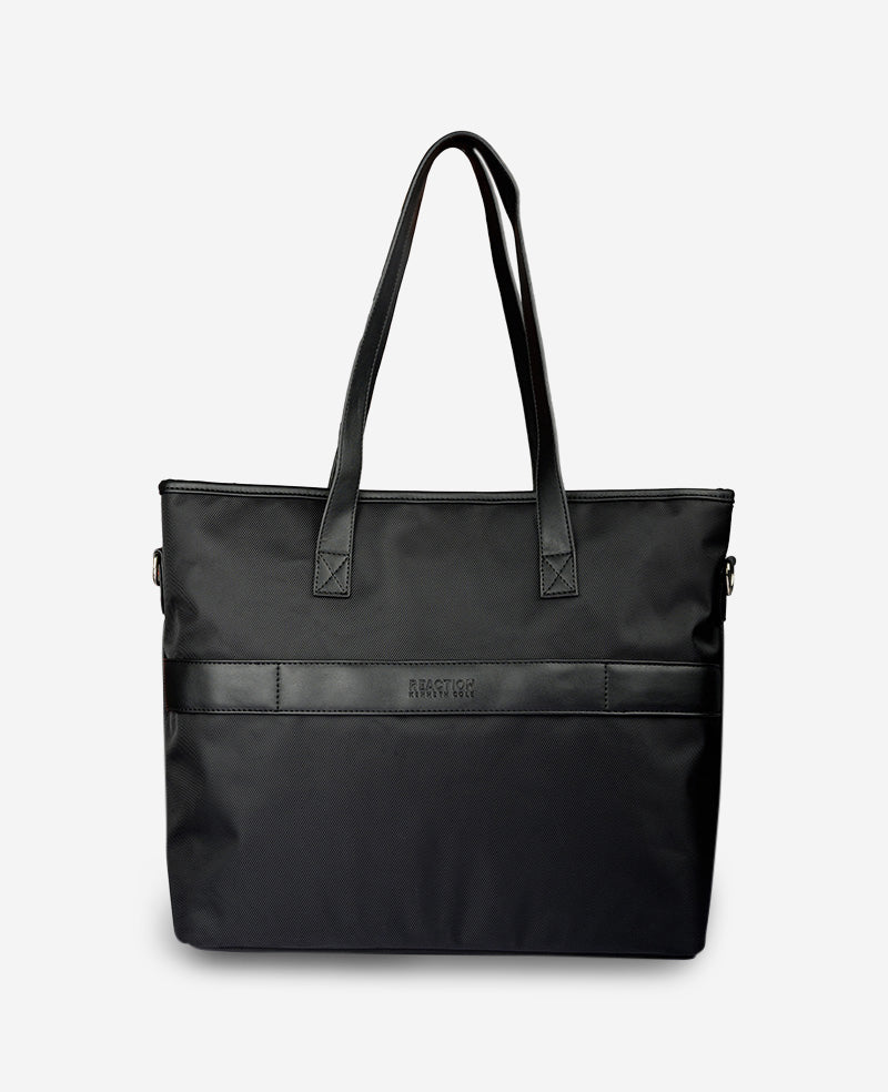 - A zip around front organization compartment on the tote features open slip pockets, pen loops, and a zippered pocket that hold all your business essentials