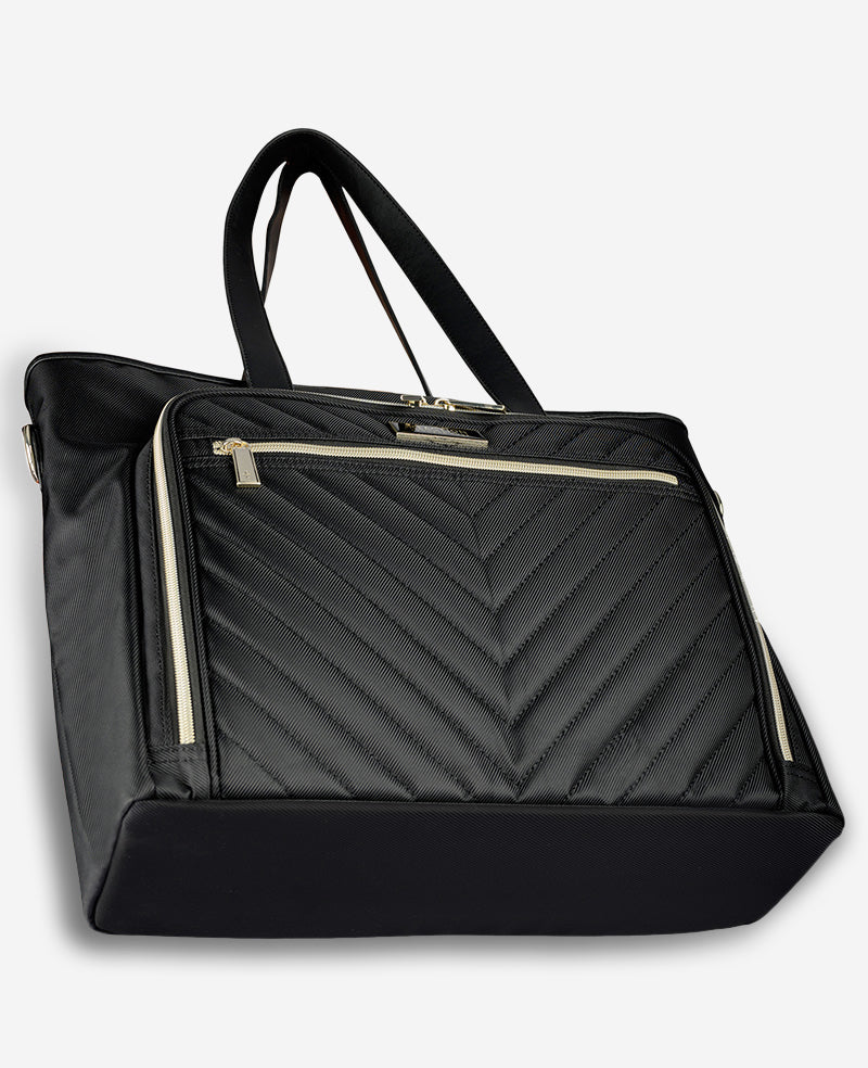 - Tote is made from a stylish chevron quilted polyester twill exterior with fully lined tear-resistant interior