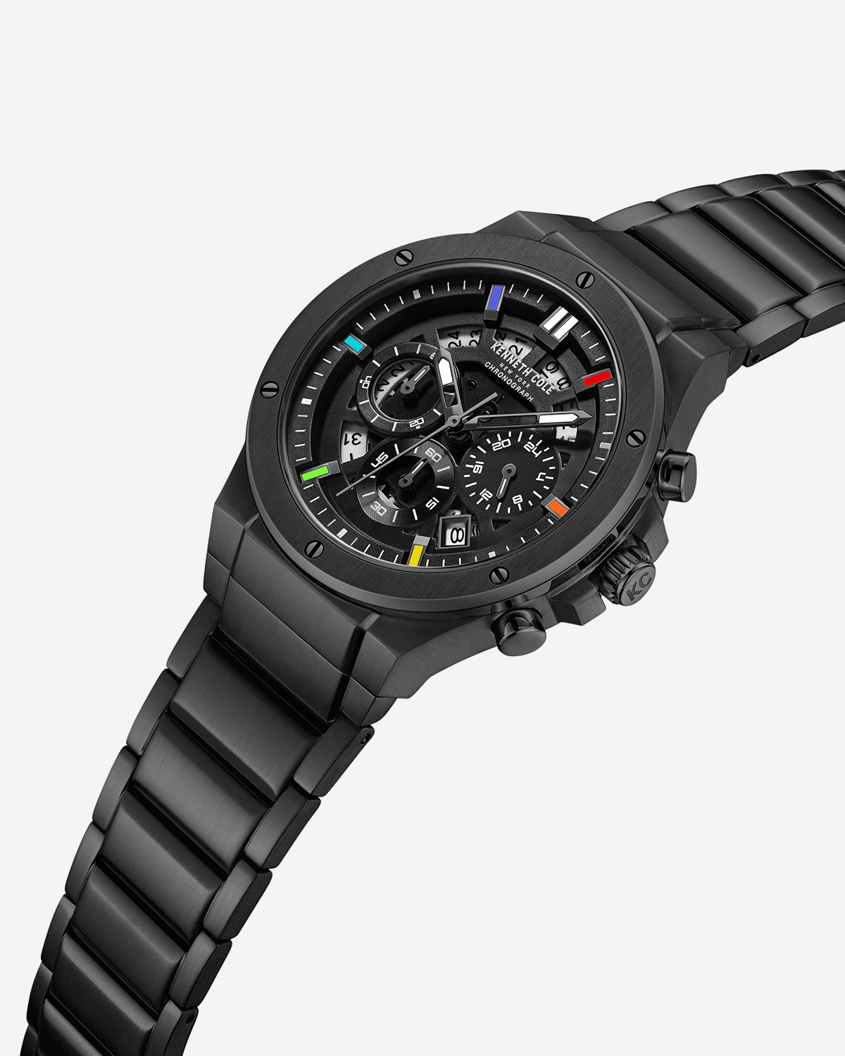 Automatic Two-Tone Gunmetal Stainless Steel Watch with Blue Leather Strap