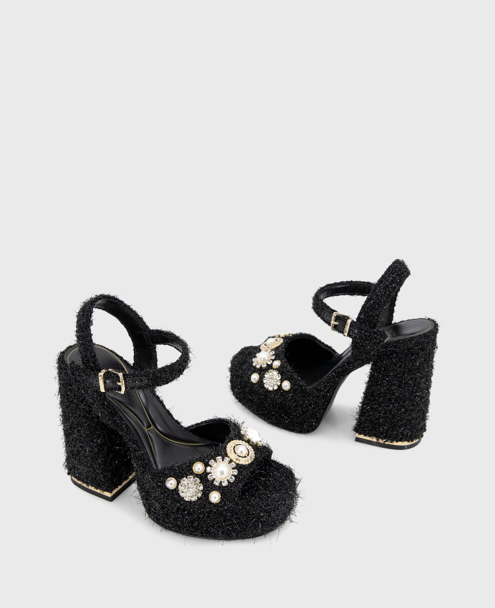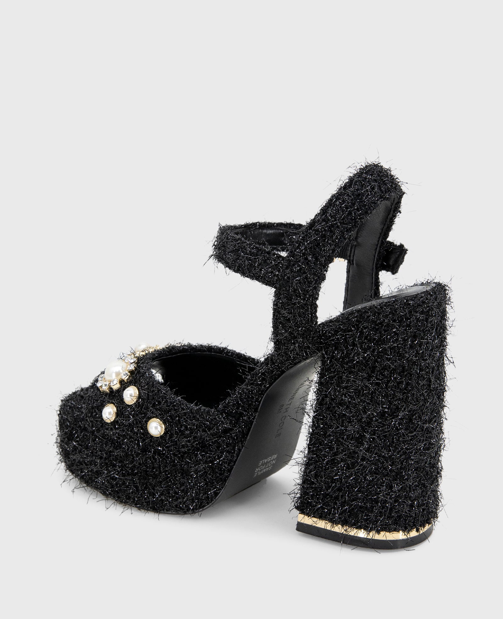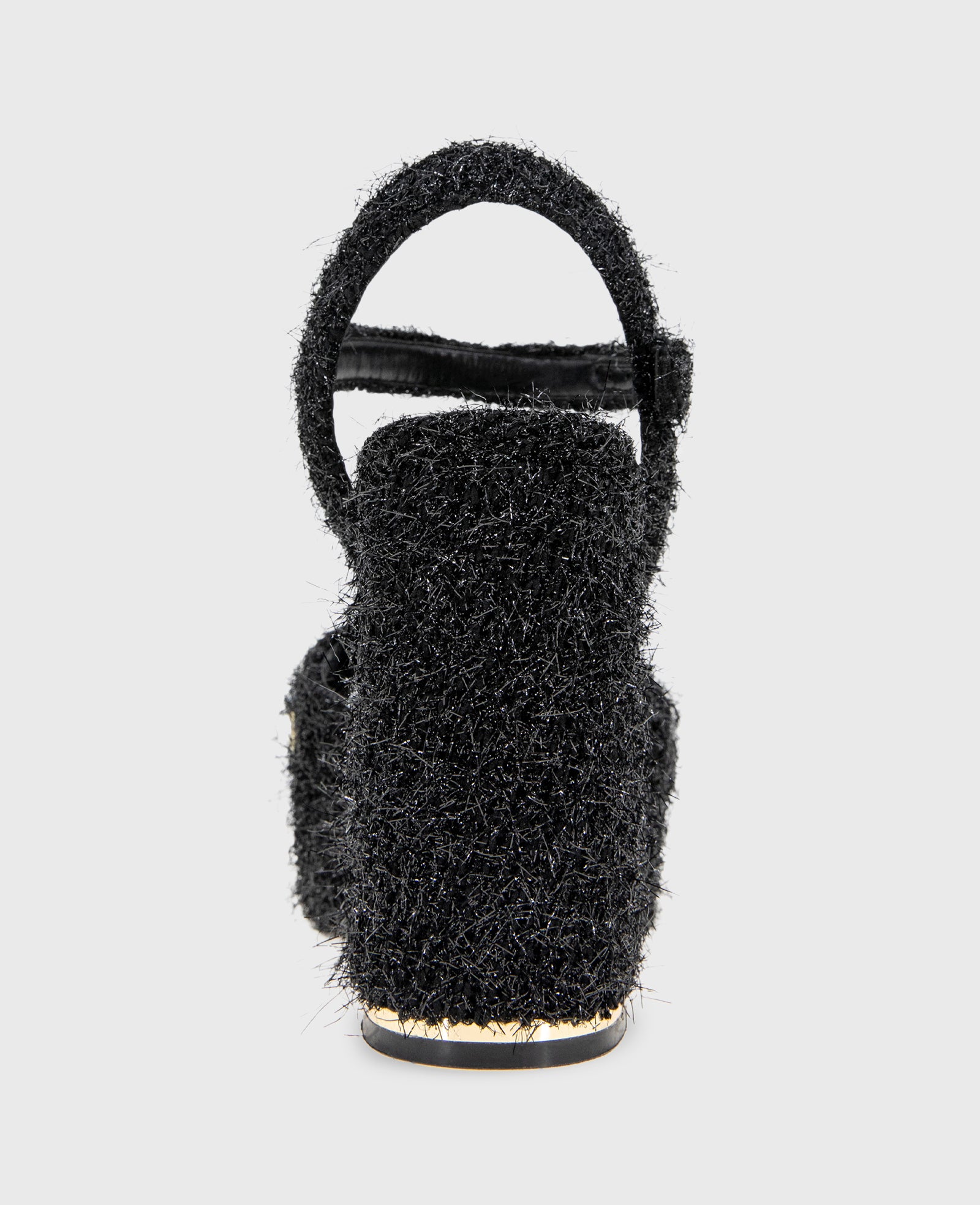 - Gold-tone trim at heel