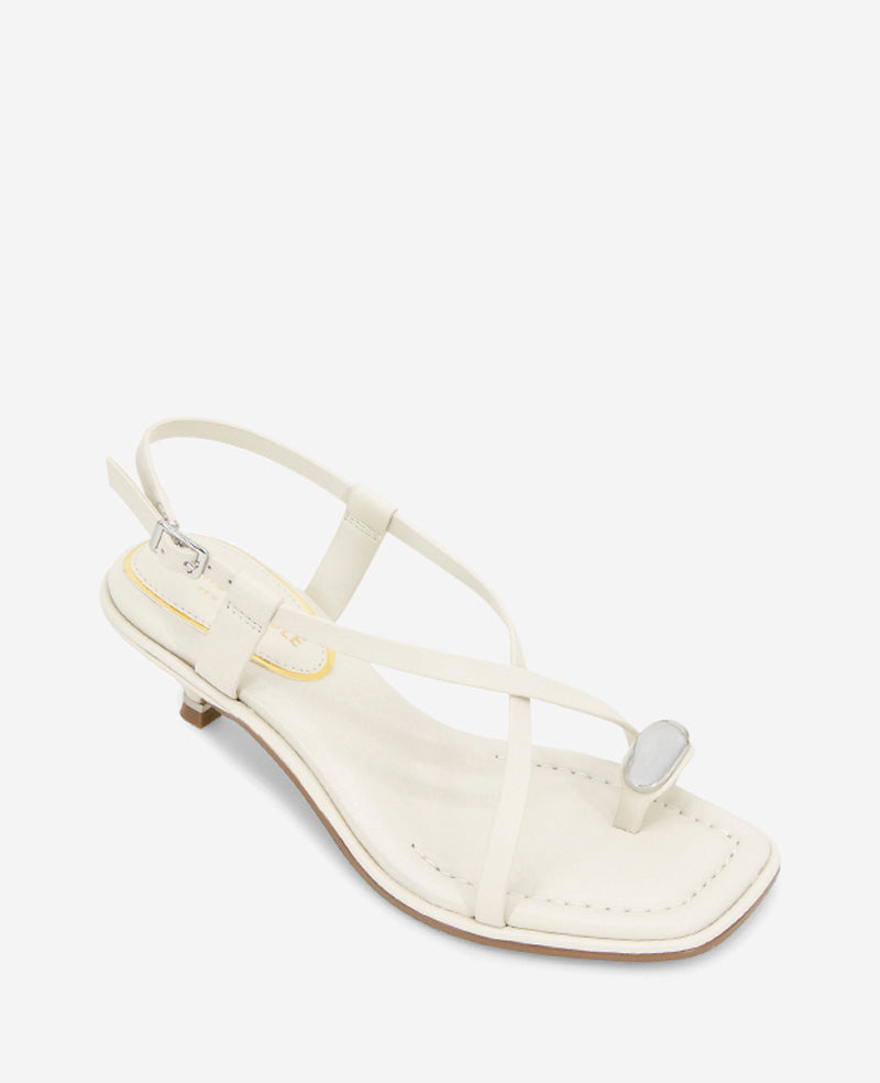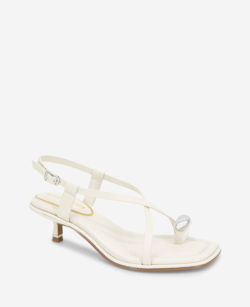 Geala Leather Metal Toe Ring Kitten Heel Sandal