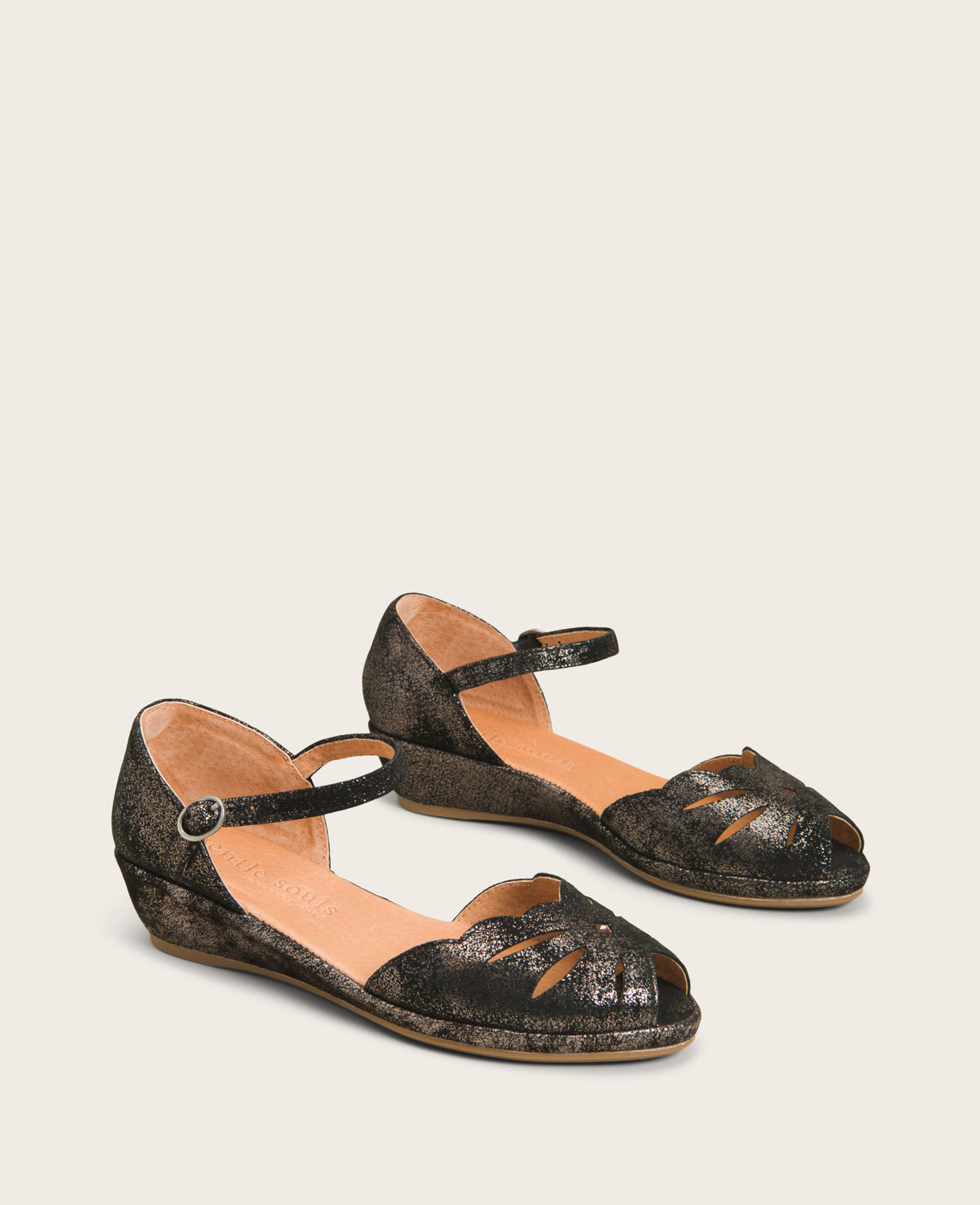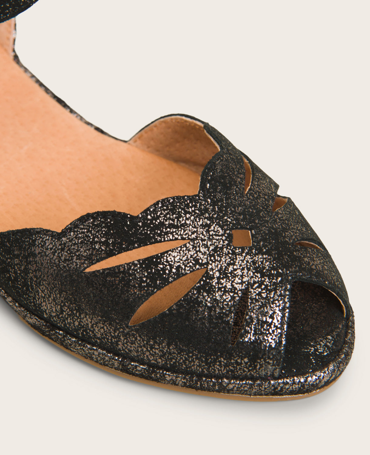 - Peep toe with delicate cut-out detailing through toe and heel