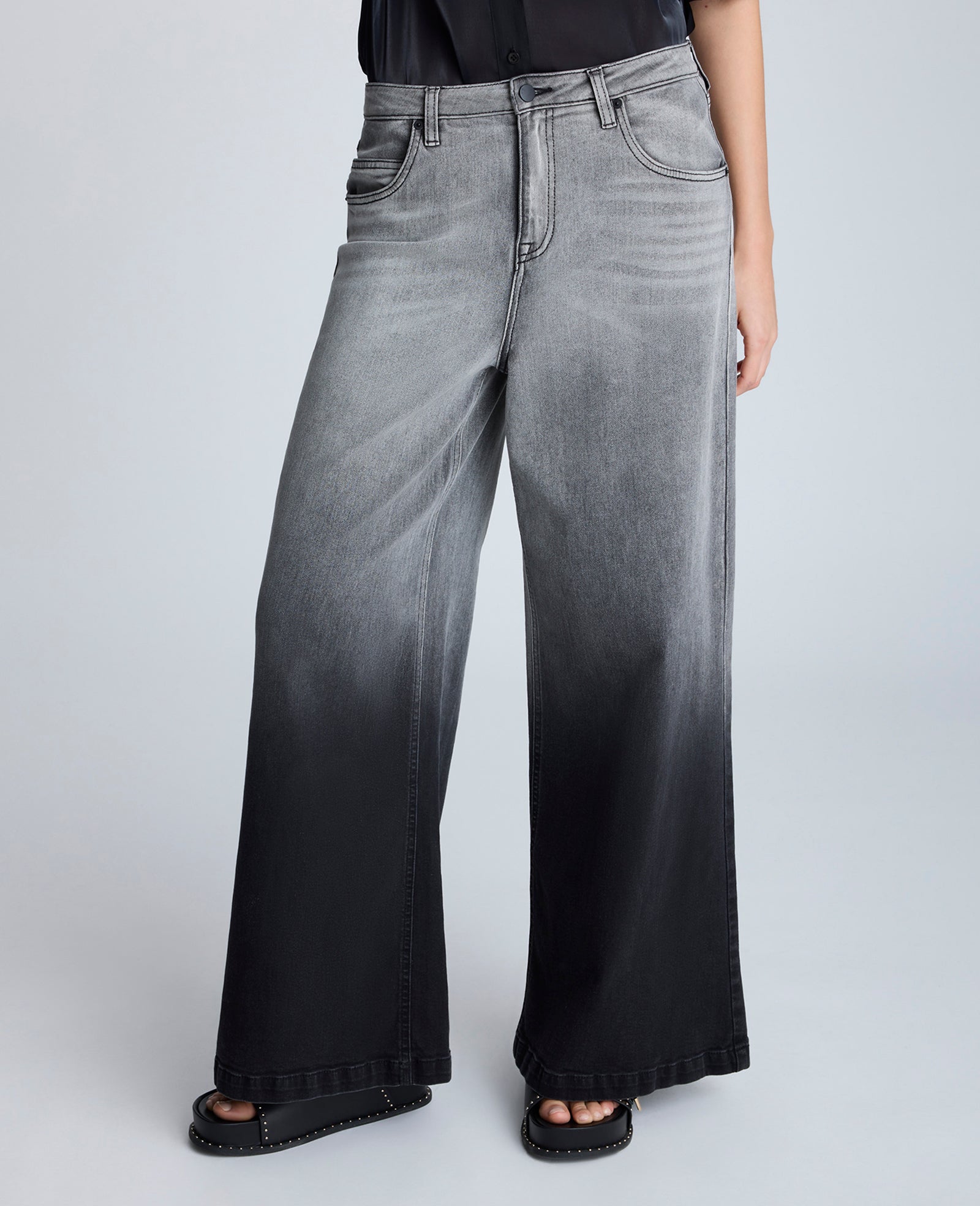 - Mid rise wide leg denim jeans