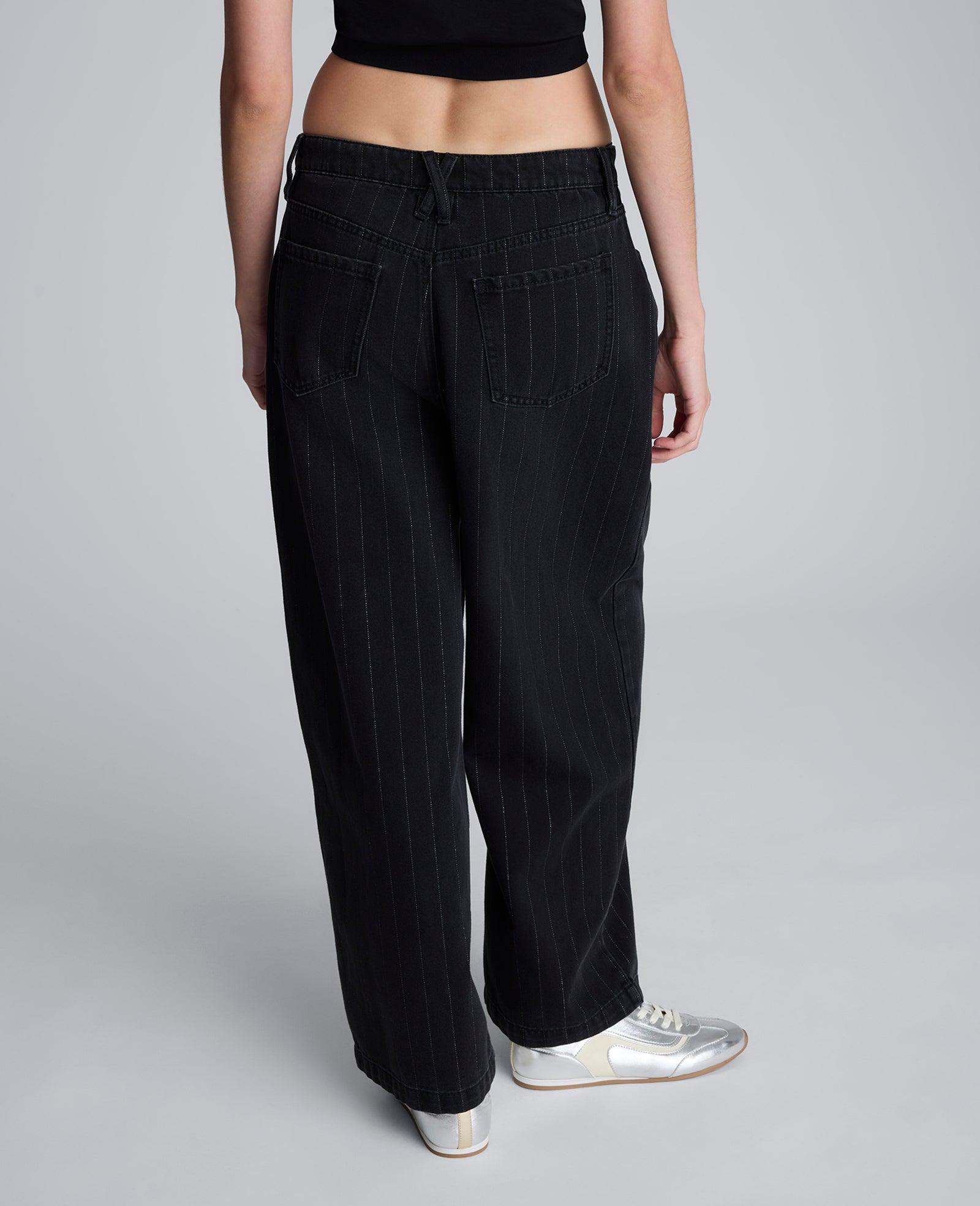 Metallic Pinstripe Wide Leg High Rise Denim Jean