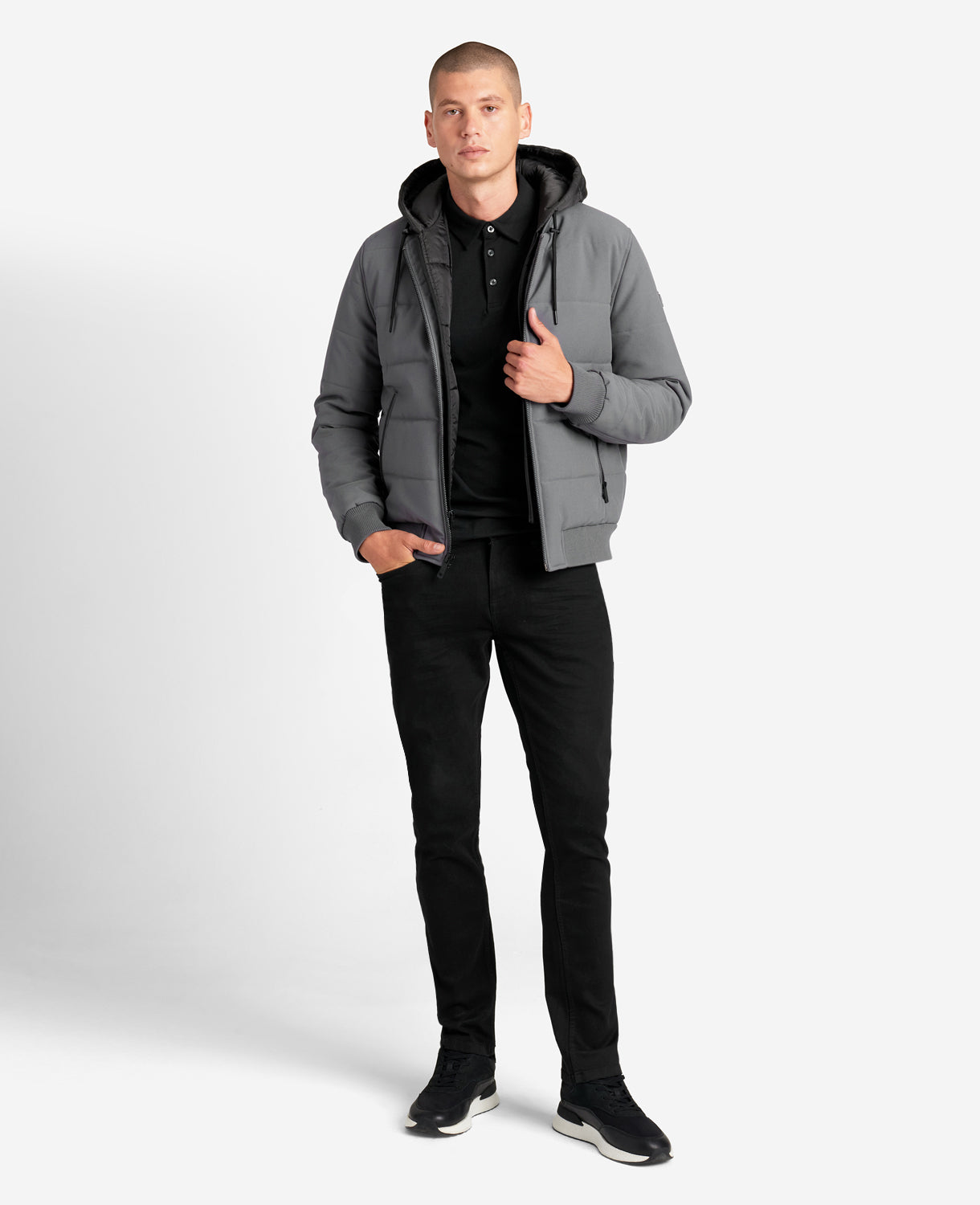 - Shell: 100% polyester; Lining: 100% polyester; Fill: 100% polyester; Hood bib: 100% polyester