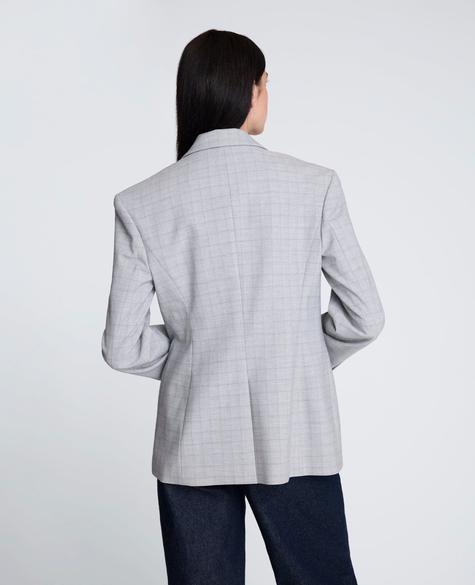 Plaid Slim One Button Jacket with Peak Lapel - Image 3