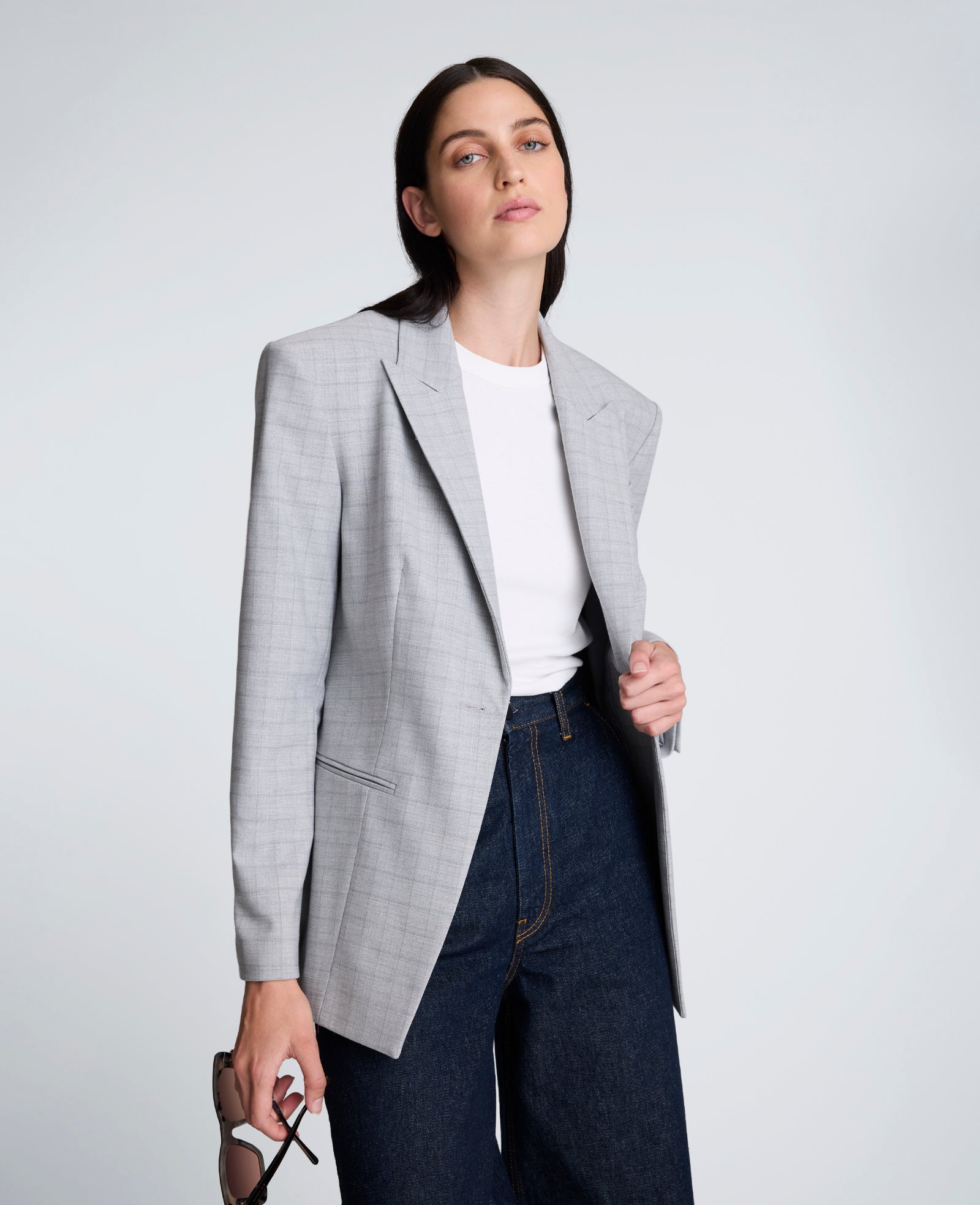 Home / ALL PRODUCTS EXCLUDING VW & GC / Plaid Slim One Button Jacket with Peak Lapel