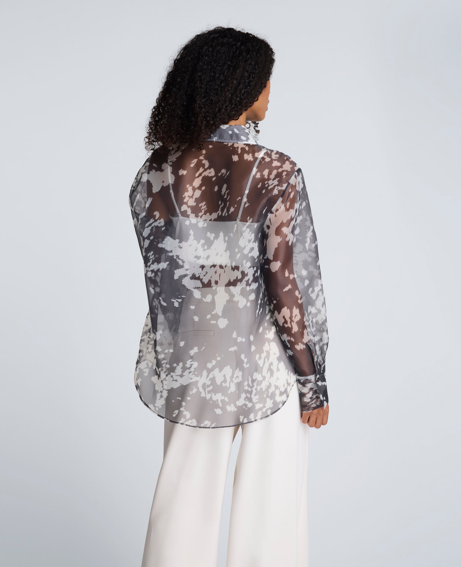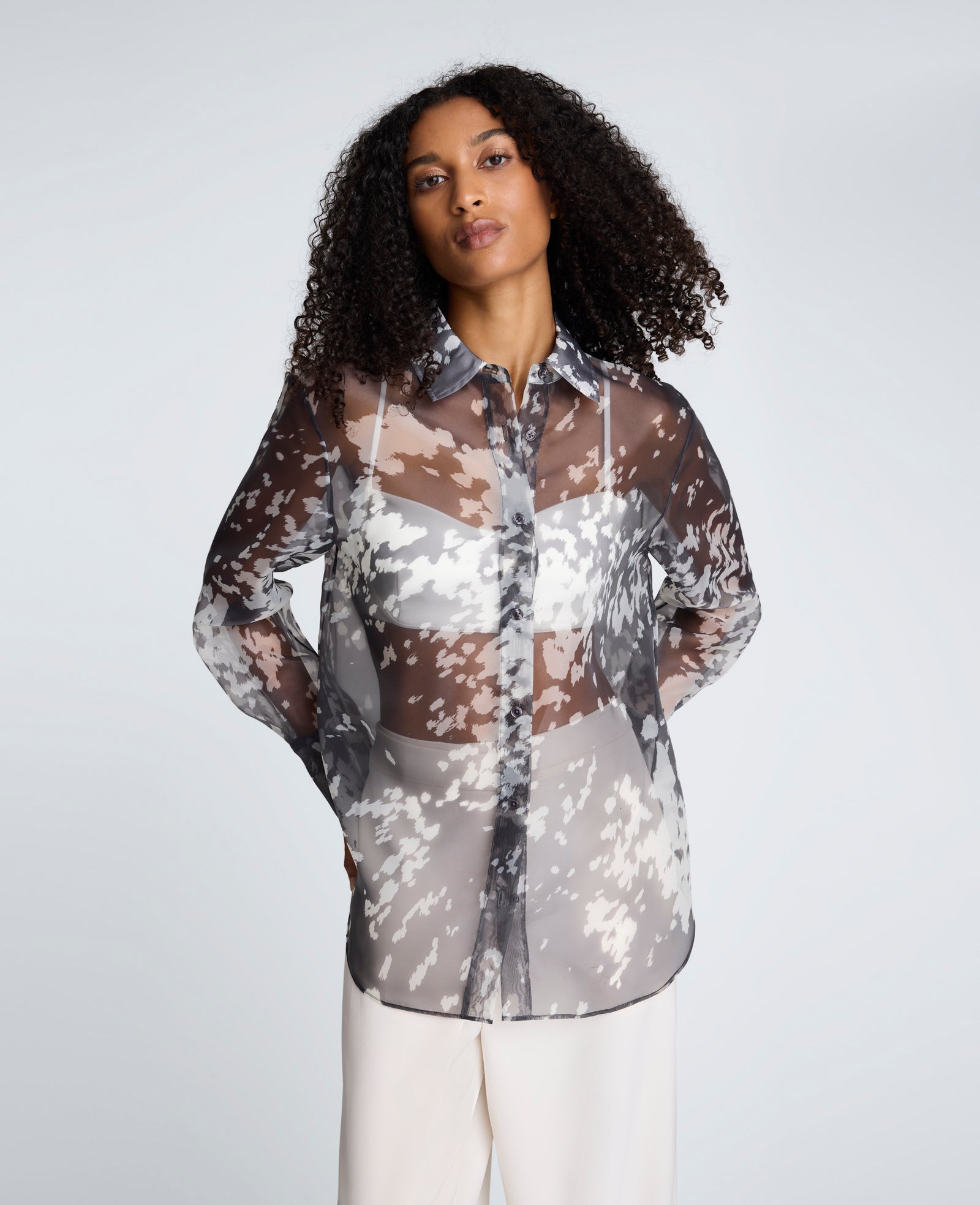 Printed Mesh Knot Front Long Sleeve Midi Dress
