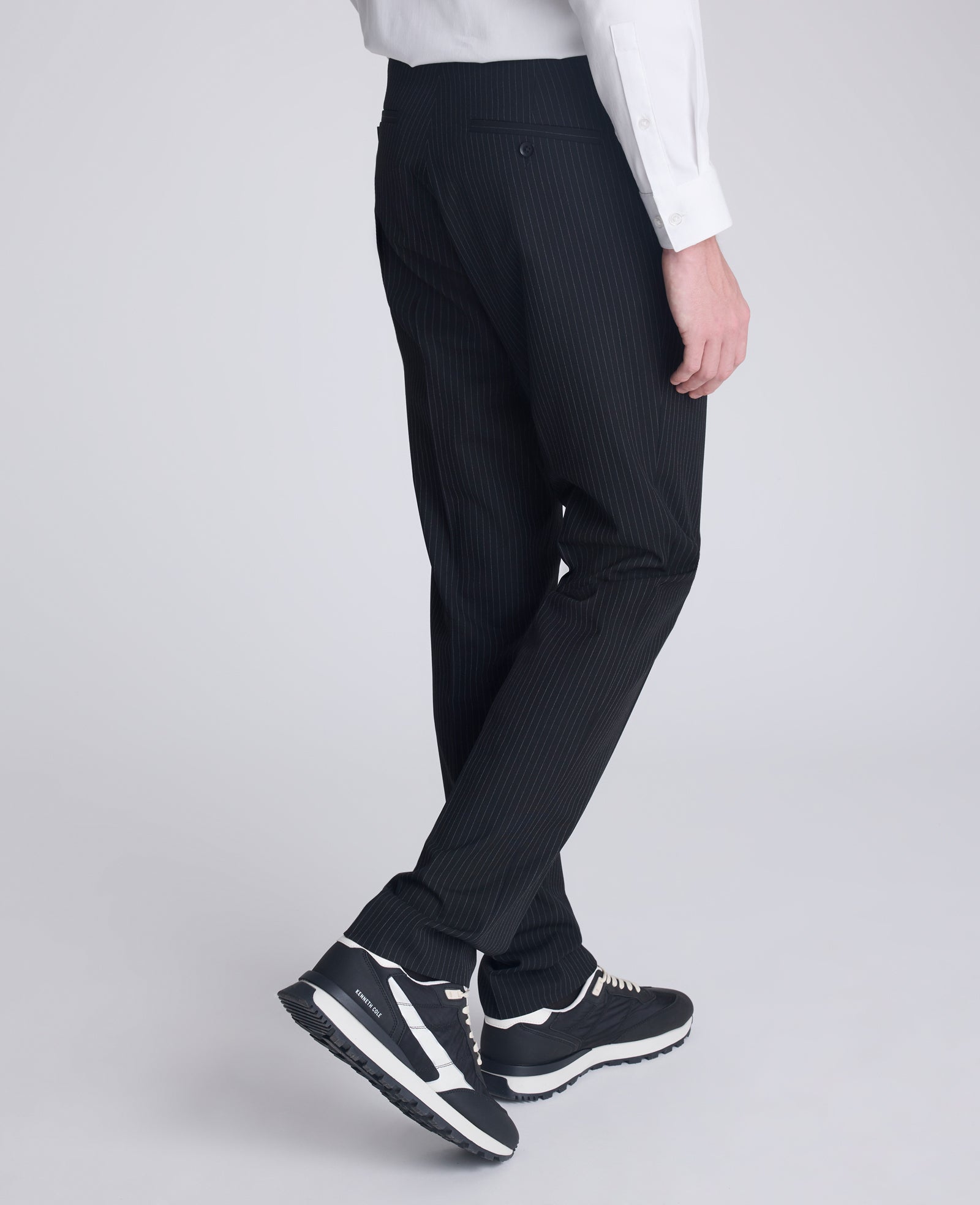 - Pants: concealed zip with hook-and-eye closure, flat-front style, side slant pockets