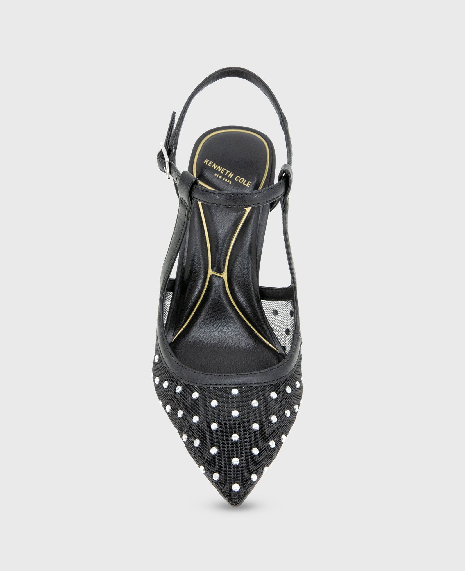 Romi Mesh Micro Stud Ankle Slingback Heel