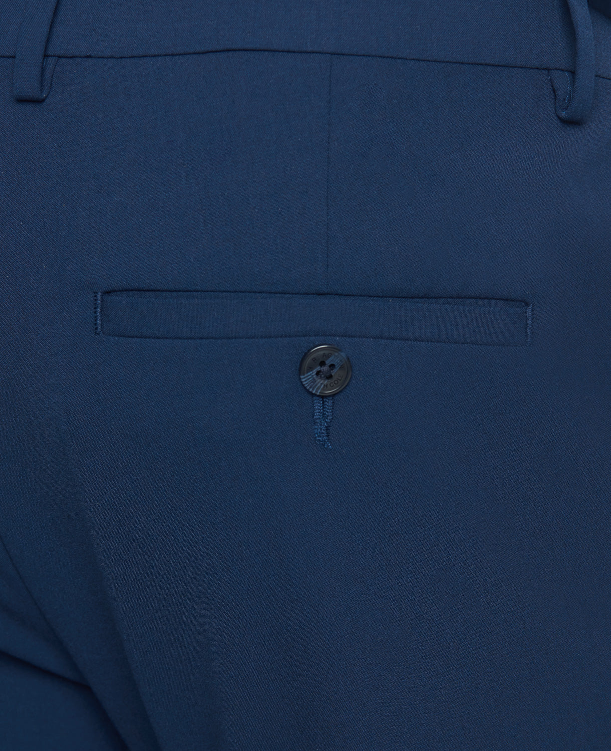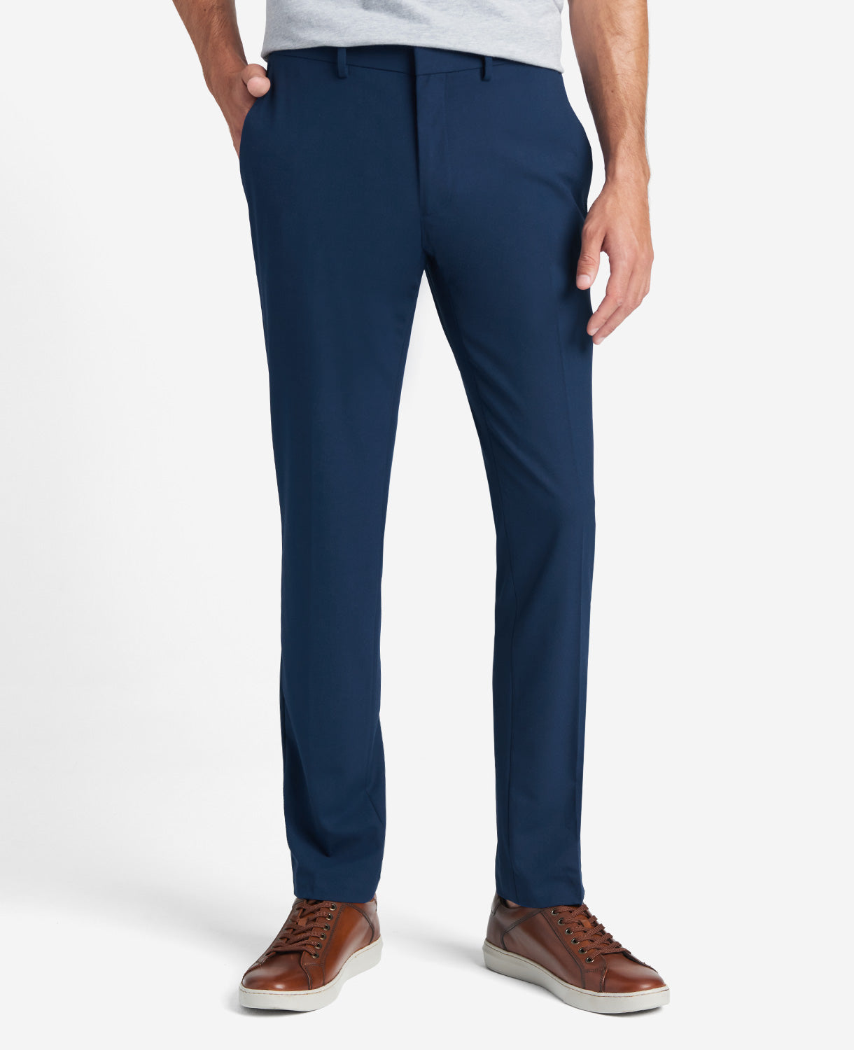 - Hook and bar closure for a seamless look in a flat front modern-fit silhouette