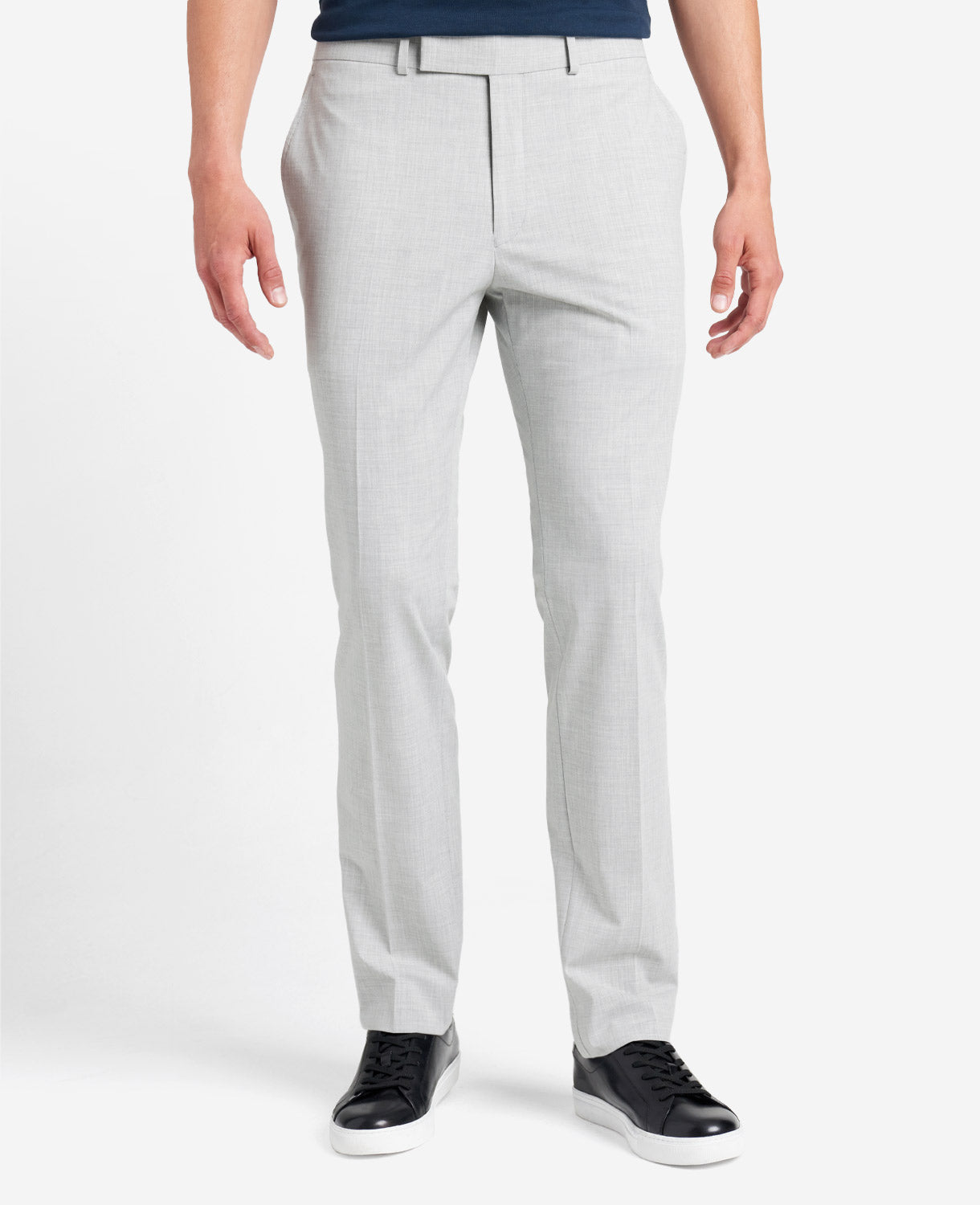 - Pants: concealed zip with hook-and-eye closure, flat-front style, side slant pockets