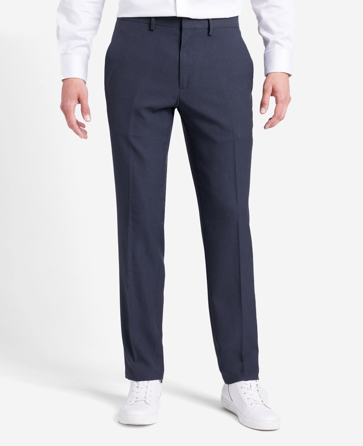 - Hook and bar closure for a seamless look in a flat front modern-fit silhouette