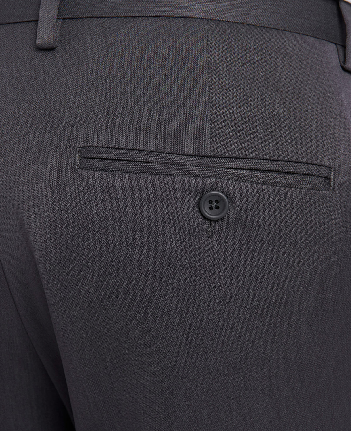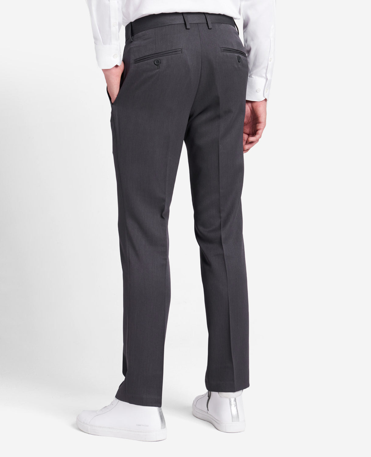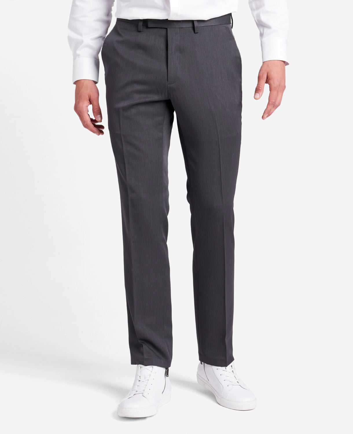 - Hook and bar closure for a seamless look in a flat front modern-fit silhouette